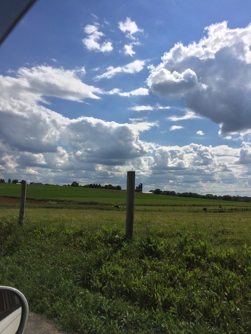 Our little one was still happily nestled in my womb when we drove out last Tuesday. The day opened a bit grey and rainy, a type of weather that I honestly don’t mind at all, but about half way down, just as the landscape was opening up with sprawling farms, the sky opened up too. It turned a brilliant shade of pool chalk blue, heavily decorated with clean cotton clouds.