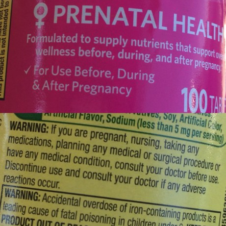 - the weird warnings I just discovered on the back of my prenatal vitamins which tell me not to take them if I’m pregnant or nursing